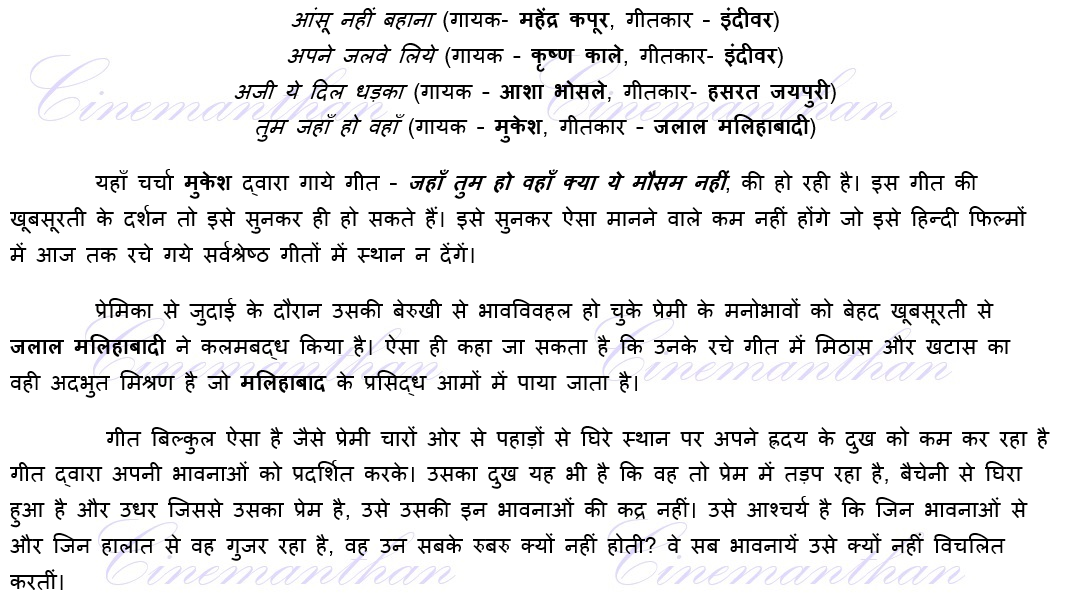 तुम जहाँ हो वहाँ क्या ये मौसम नहीं