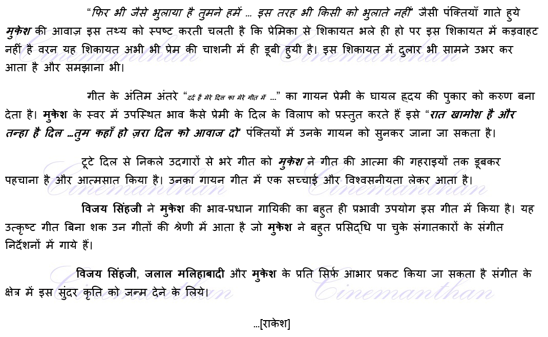 इस तरह भी किसी को भुलाते नहींदर्द है मेरे दिल का मेरे गीत में