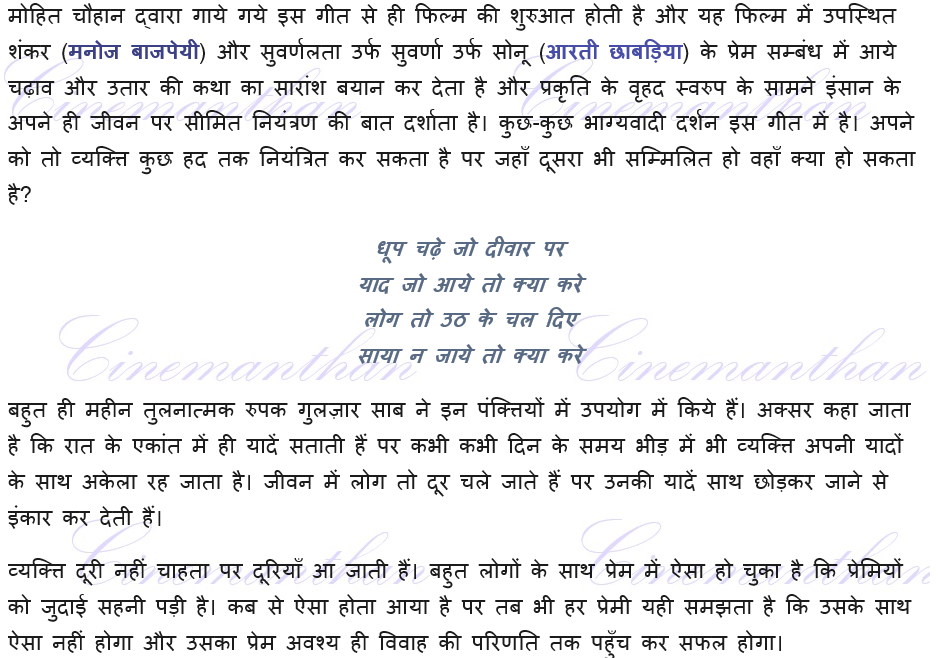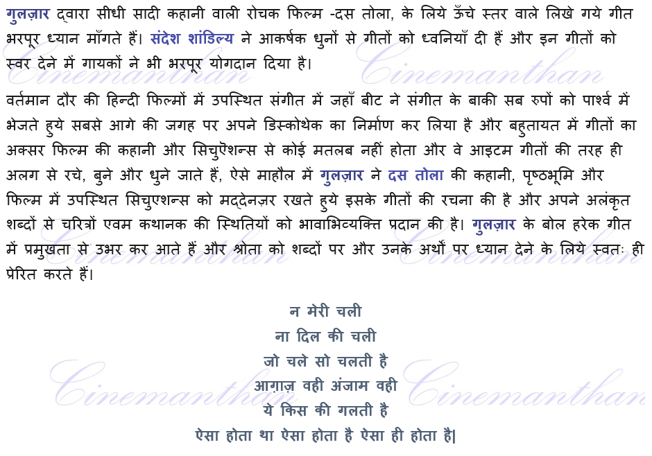 22 October 2010, Aarti Chhabria, Ajoy Varma, Asrani, Bharti Achrekar, Brijendra Kala, Cinemanthan.com, Dilip Prabahvalkar, Dus Tola, Govind Namdeo, gulzar, Manoj Bajpai, Mohit Chauhan, Ninad Kamat, Pallavi Sharda, Ponmuttayidunna Tharavu, Raghunath Paleri, Rakesh, Sandesh Shandilya, Siddharth Makkar, Sonu Nigam, Sukhwinder Singh, Sunidhi Chauhan, Warner Bros., Warner Bros. Pictures