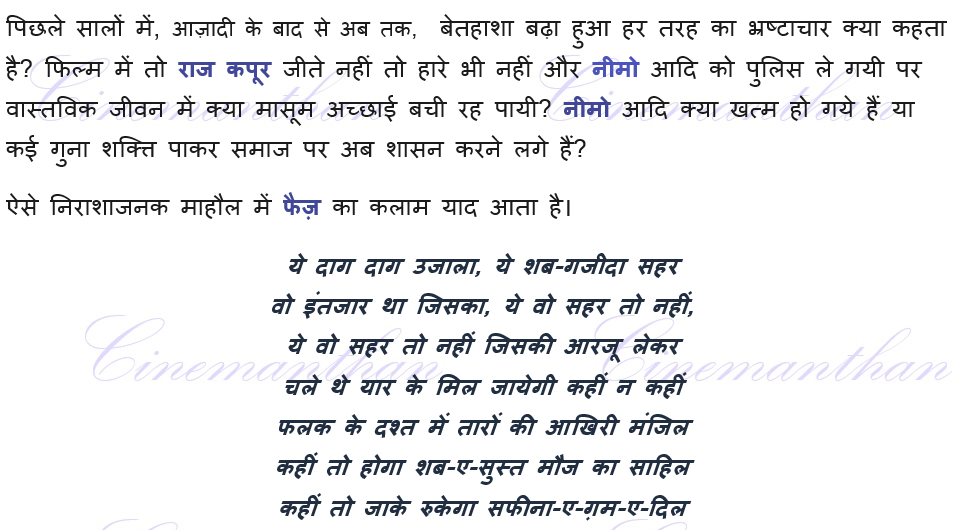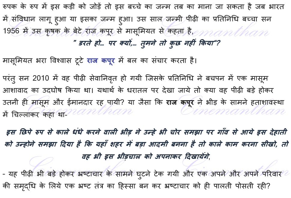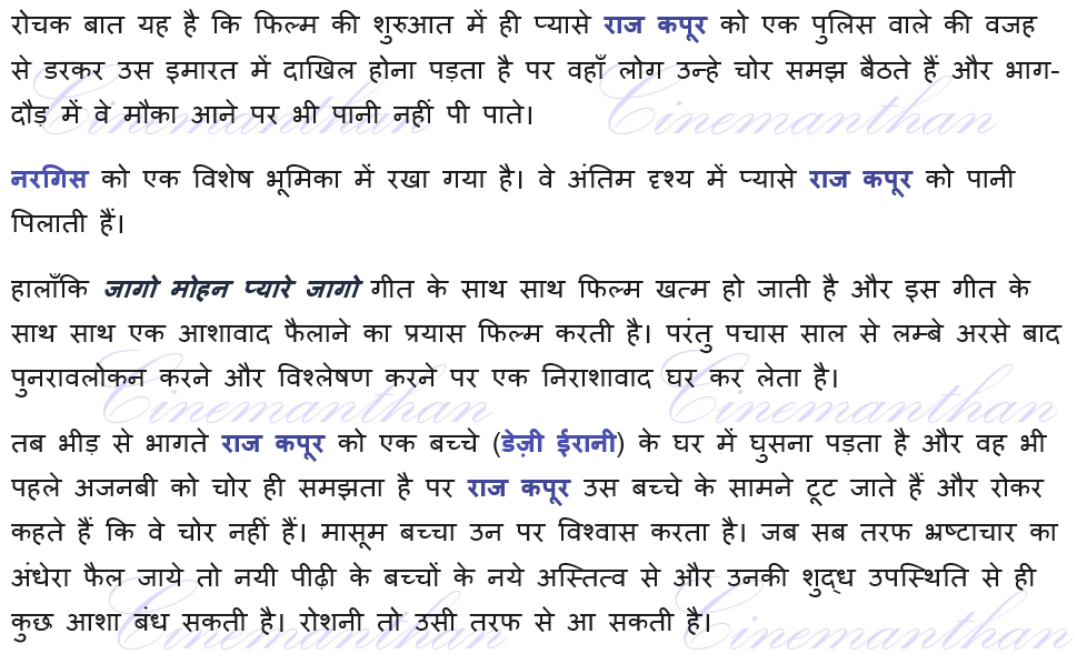 Amit Mitra, Cinemanthan.com, Corruption, Daisy Irani, Iftikhar, India, Indian Constitution, IPTA, Jagte Raho, Jane Bhi Do Yaron, KA Abbas, Krishan Dhawan, Lata Mangeshkar, Mukesh, Nana palsikar, Nargis, Nimo, Pahari Sanyal, Pradeep Kumar, Premchand, Radhu Karmakar, Raj Kapoor, Rakesh, Rashid Khan, Salil Chaudhary, Satyajit Ray, Shambhu Mitra, Shri 420, Thief
