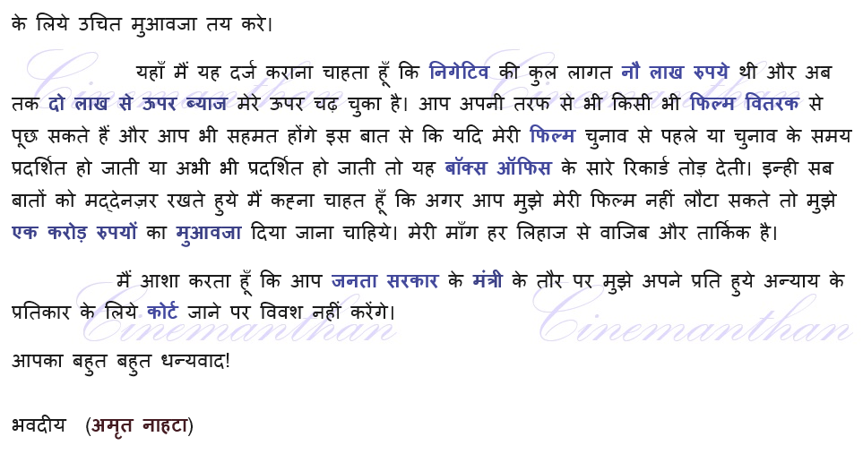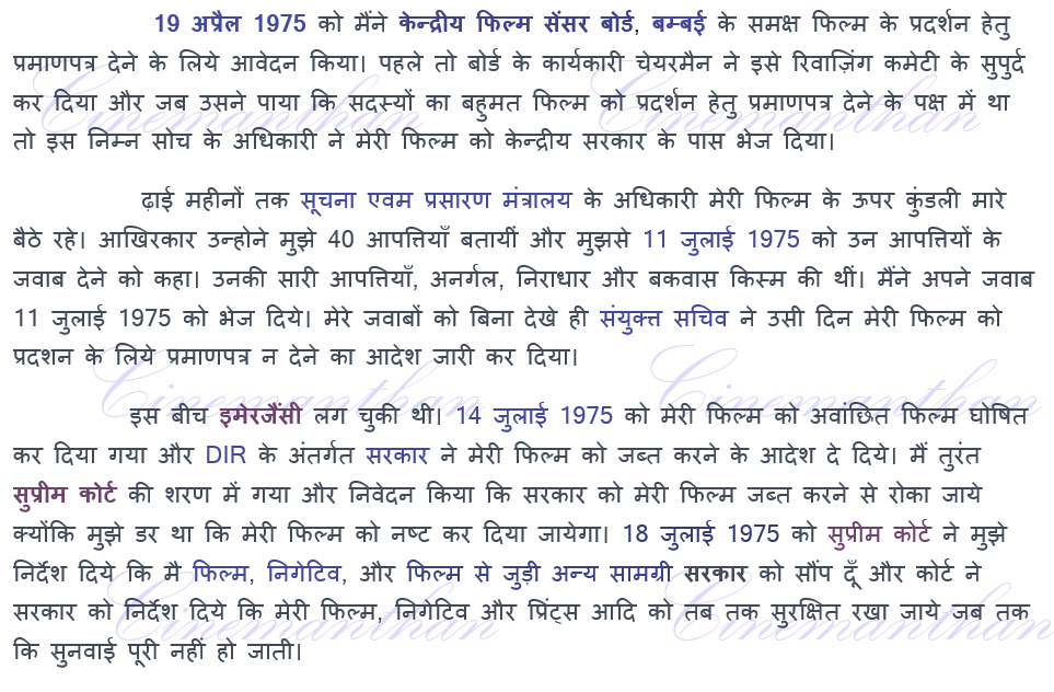 नोट: शैक्षणिक व अव्यवसायिक उपयोग के लिये हिन्दी सिनेमा के इतिहास से सम्बंधित एक विवादास्पद फिल्म के निर्माता के पत्र का हिंदी रुपांतरण प्रस्तुत किया गया है।