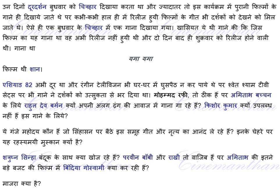 amitabh bachchan, Asha Bhosle, Bindiya Goswami, Cinemanthan.com, Dilip Tahil, Goga Kapoor, Johnny Walker, Katy Mirza, Kishore Kumar, Kulbhushan Kharbanda, Mac Mohan, Mazhar Khan, Parveen Babi, R.D.Burman, Raakhee Gulzar, Rafi, Rakesh, Ramesh Sippy, Salim-Javed, Shaan, Shashi Kapoor, Sholay, Sudhir, Sudhir Pandey, Sunil Dutt, Usha Mangeshkar, Usha Utthup, Yunus Parvez