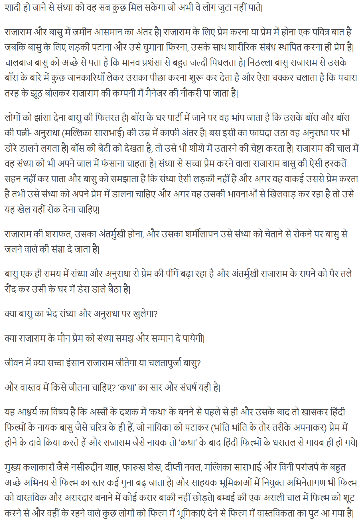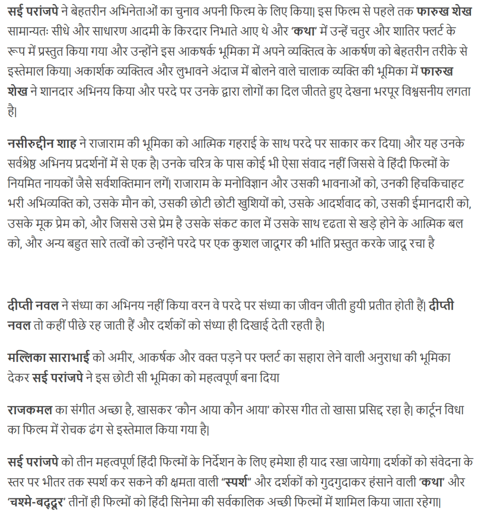 Chashm-e-Baddur, Cinemanthan.com, Deepti Naval, Farookh Sheikh, Farooq Sheikh, Katha, Mallika Sarabhai, Naseeruddin Shah, Rajkamal, Rakesh, Sai Paranjpe, Sparsh, Vini Paranjpe