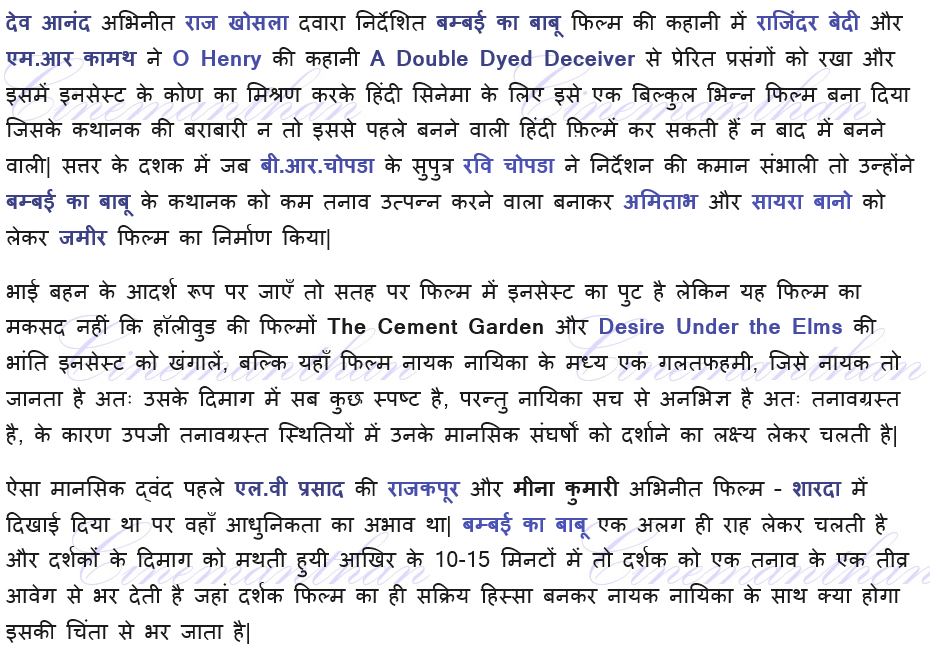Achla Sachdev, amitabh bachchan, Asha Bhosle, Bombai ka Babu(1960), Brother Sister Love relationship, Cinemanthan.com, Desire Under the Elms, Dev Anand, Dilip kumar, Incest, Jagdish Raj, Jal Mistry, LV Prasad, Majruh Sultanpuri, Meena Kumari, Mohammed Rafi, Mukesh, Najir Husain, Raj Kapoor, Raj Khosla, Rajinder Singh Bedi, Rakesh, Rashid Khan, Ravi Chopda, Sachin Deb Burman, Saira Bano, SD Burman, Sharda(1957), Suchitra Sen, The Cement Garden, Zameer