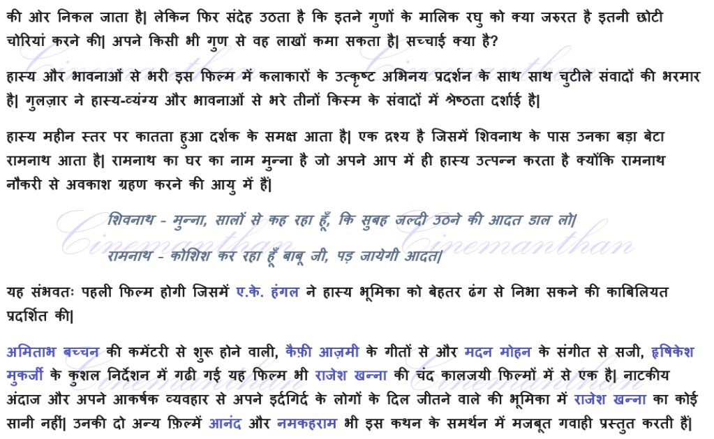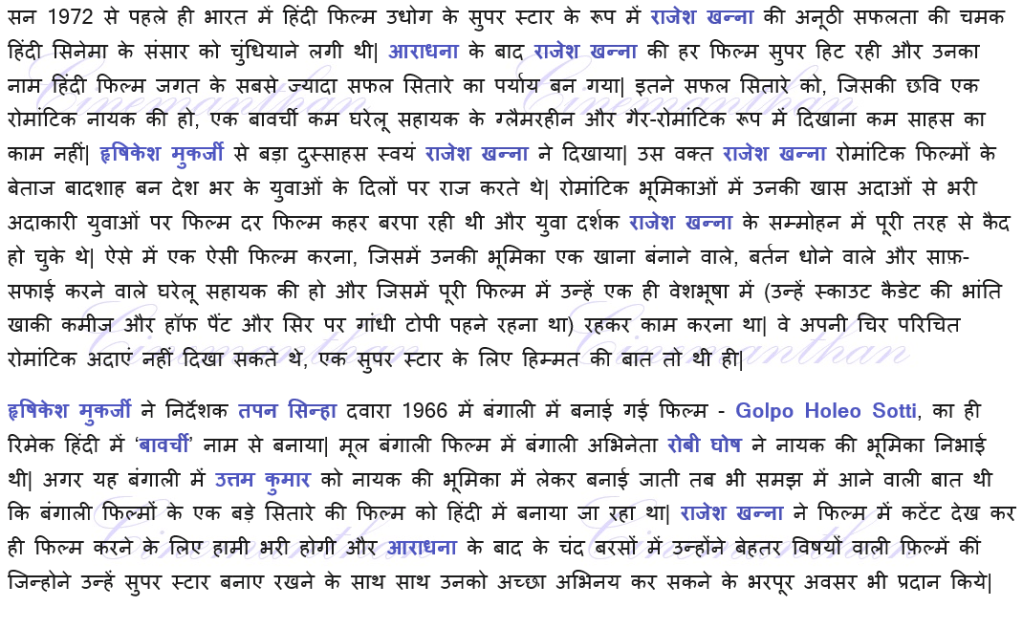 A.K.Hangal, Anand, Aradhna, Asrani, Bavarchi(1972), Cinemanthan.com, Durga Khote, Golpo Holeo Sotti, Gopi Krishna, gulzar, Gurudev Tagore, Harindranath Chattopadhyay, Hrishikesh Mukerjee, Jaya Bachchan, Jaya Bhaduri, Kali Banerjee, Kishore Kumar, Lakshmi Shanker, Lata Mangeshkar, Madan Mohan, Manna Dey, Master Raju, Namak Haram, Nirmala Devi, Paintal, rajesh khanna, Rakesh, Robi Ghosh, Tapan Sinha, Uttam Kumar