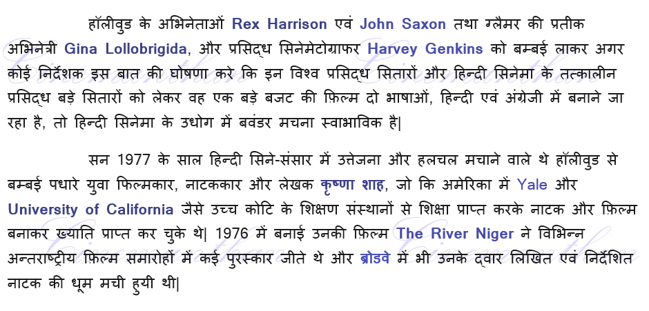 amitabh bachchan, Bombay, Broadway, Cinemantham.com, Delhi, Dharmendra, Filmfare, Gina Lollobrigida, Harvey Genkins, Hindi Cinema, Hollywood, Indian Oil, John Saxon, Kishore Kumar, Krishna Shah, Manohar Mulgaonkar, OP Ralhan, Premnath, R K Narayana, R.D.Burman, Raiders of the Sacred Stone, Rakesh, Rex Harrison, Shalimar 1978, Shammi Kapoor, Sponono, Sylvia Miles, The River Niger, University of California, Usha Utthup, Yale, Zeenat Aman
