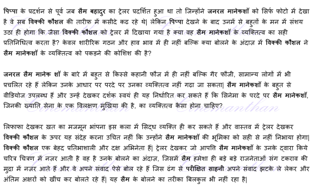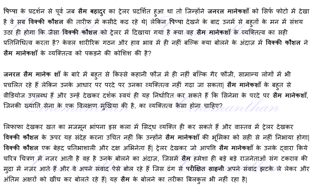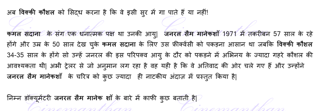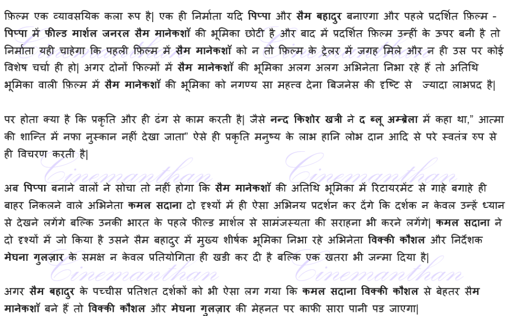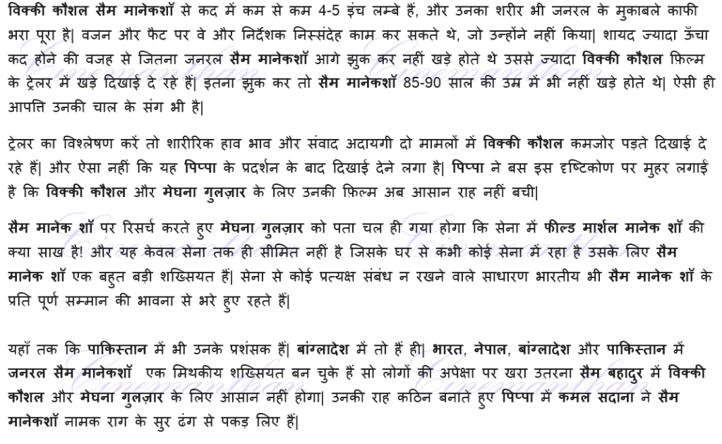 आशा ही कर सकते हैं कि सैम बहादुर फ़िल्म सब कुछ सही ढंग से निभा ले जायेगी|