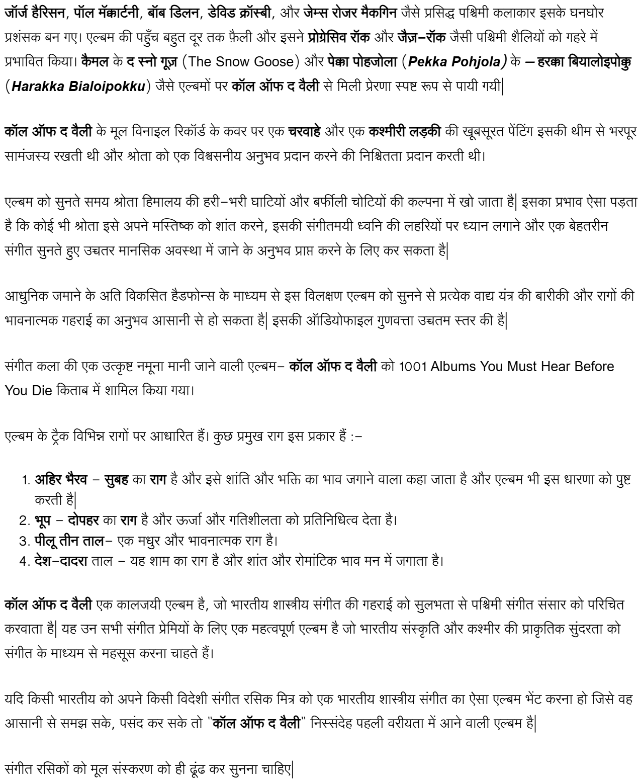 #1001AlbumsYouMustHearBeforeYouDie, #AhirBhairav, #Bansuri, #Bhoop, #BobDylan, #BrijBhushanKabra, #CallOfTheValley1967, #Camel, #DavidCrosby, #DesDadraTaal, #Flute, #GeorgeHarrison, #Guitar, #HarakkaBialoipokku, #JamesRogerMcGuinn, #JazzRock, #ManikRaoPopatkar, #Pahadi, #PanditHariPrasadChaurasia, #PanditShivKumarSharma, #PaulMcCartney, #PekkaPohjola, #PilooTeenTaal, #ProgressiveRock, #Santoor, #Tabla, #TheSnowGoose