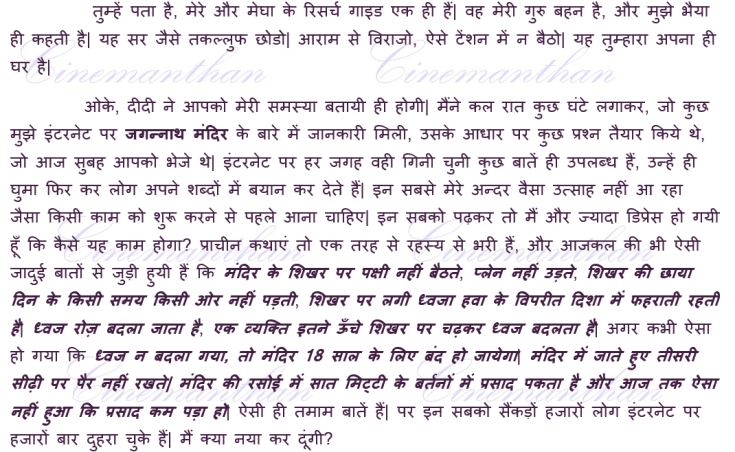 ठीक है, मैं कल ही अपनी रिसर्च टीम लेकर पुरी के लिए निकल जाती हूँ| आपसे लगातार संपर्क में रहूंगी|