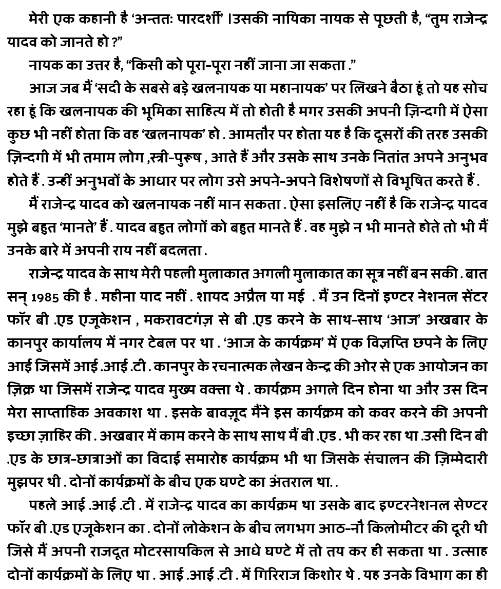 First Published in – हमारे युग का खलनायक राजेंद्र यादव (संपादक – भारत भारद्वाज, साधना अग्रवाल), 2003
