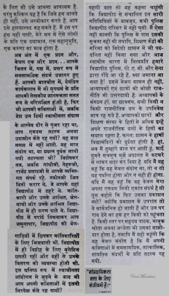 महादेवी वर्मा का साक्षात्कार , साक्षात्कारकर्ता – उमाकांत मालवीय