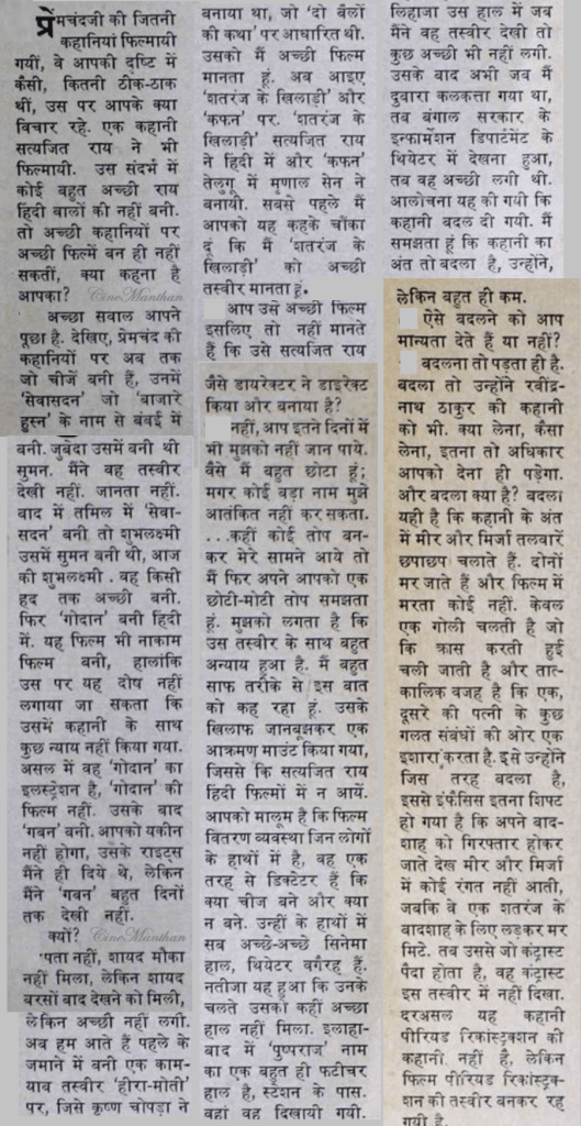 प्रेमचंद के साहित्य पर बनी फिल्मों पर उनके सुपुत्र अमृतराय के विचार